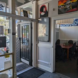 We stopped in here because my husband saw their sandwich board promoting New Orleans style coffee with chicory. Whenever he sees that, he has to get a coffee since it reminds him of his hometown of NOLA. He enjoyed the coffee and thought it was of high quality. The person working behind the counter was very friendly. She told us we could sit in the office space and let us know the rooms were available for renting. The cafe doesn't have seats other than those in the office space. It's very bright in the cafe itself and it's cute and clean.